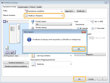 Selezionare [Modifica e Anteprima] in [Metodo di stampa].
