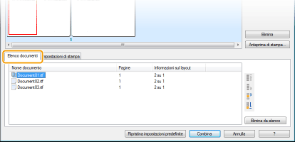 Nell'elenco [Nome documento], selezionare il lavoro di stampa per il documento combinato da stampare, quindi fare clic su