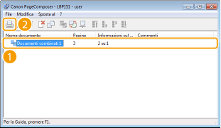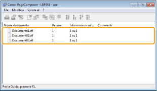 Con Canon PageComposer è possibile combinare più documenti in un lavoro di stampa e stampare il lavoro con le impostazioni di stampa specificate. Ad esempio, questa funzione consente di combinare documenti creati con applicazioni diverse e stampare tutte le pagine nello stesso formato.
