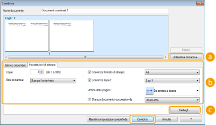 Se necessario, modificare le impostazioni e fare clic su [Combina].