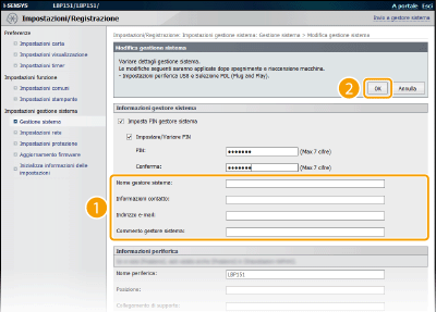 Se necessario, immettere il nome e le informazioni di contatto del gestore sistema e fare clic su [OK].