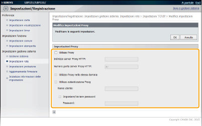 Selezionare la casella di controllo [Utilizzo Proxy] e specificare le impostazioni richieste.