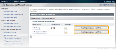 Fare clic su [Chiave e certificato] in [Impostazioni TLS].