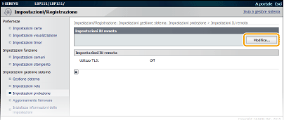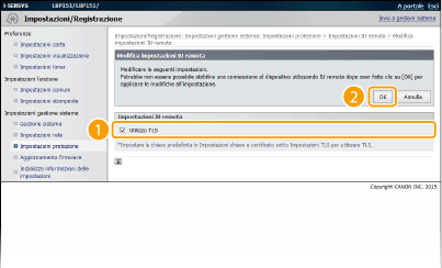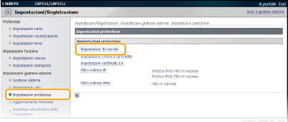 Fare clic su [Impostazioni protezione]  [Impostazioni IU remota].