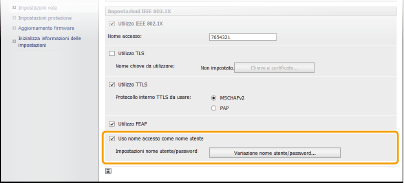 Selezionare la casella di controllo [Utilizzo IEEE 802.1X], inserire il nome per l'accesso nella casella di testo [Nome accesso] e specificare le impostazioni richieste.