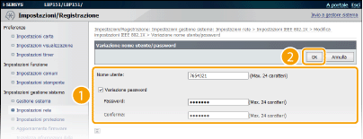 Fare clic su [Variazione nome utente/password].