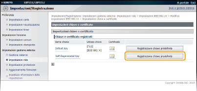 Fare clic su [Registrazione chiave predefinita] a destra della coppia di chiavi che si desidera utilizzare per l'autenticazione client.