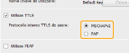 Selezionare la casella di controllo [Utilizzo TTLS] o [Utilizzo PEAP].