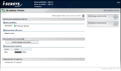 Se non si conosce l'indirizzo IP della macchina, è possibile avviare la IU remota dalla finestra di stato della stampante.