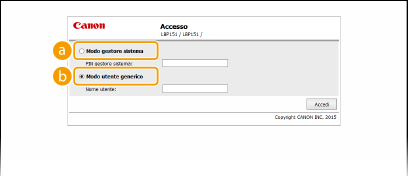 Selezionare [Modo gestore sistema] o [Modo utente generico].