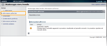 Quando si verifica un errore, questa pagina viene visualizzata facendo clic sul messaggio visualizzato in [Informazioni sull'errore] nella Pagina portale (pagina principale).