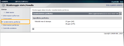 Questa pagina visualizza la velocità massima di stampa della macchina.