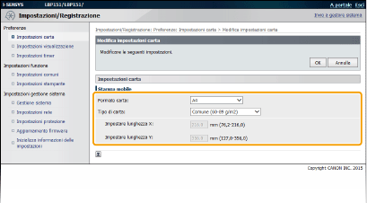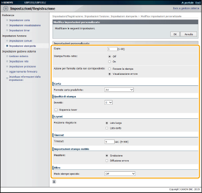 Impostazioni utente 1/Impostazioni utente 2/Impostazioni utente 3