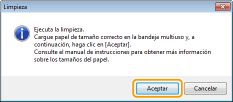 El papel entra lentamente hacia el interior del equipo y comienza la limpieza. Ésta habrá finalizado cuando el papel haya salido completamente.