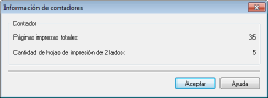 Puede consultar el número total de páginas que el equipo ha impreso revisando el contador de páginas en la Ventana Estado de la impresora.