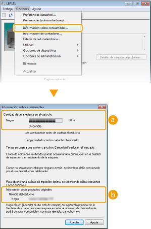 Podrá comprobar la cantidad restante en el cartucho de tóner en [Información de consumibles] en la Página del portal (página principal) de la IU remota. Página del portal (página principal)