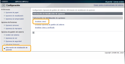 Seleccione la configuración que quiere inicializar y, a continuación, haga clic en [Inicializar].