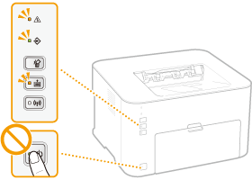 Durante una actualización del firmware, los 3 indicadores  (Alarma),  (Trabajo) y  (Papel) parpadearán. No apague el equipo hasta que no haya finalizado la actualización.