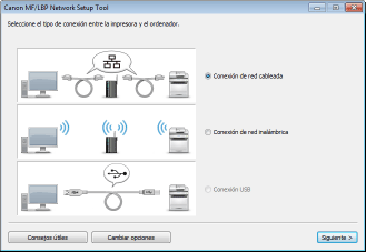 Los routers inalámbricos (o los puntos de acceso) conectan el equipo a un ordenador a través de ondas de radio. Si el router inalámbrico incluye configuración Wi-Fi protegida (WPS), basta con pulsar un botón para configurar la red. Si los dispositivos de red no admiten la configuración automática, o si desea especificar las opciones de autenticación y cifrado con mayor detalle, deberá configurar la conexión manualmente. Para ello utilice la MF/LBP Network Setup Tool de su ordenador. Asegúrese de que su ordenador esté correctamente conectado a la red.