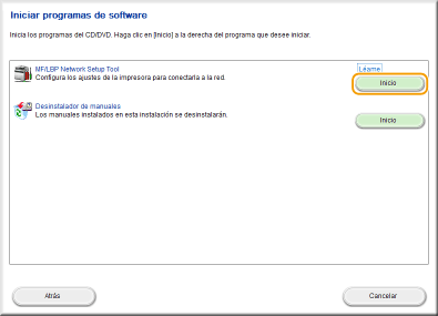 Haga clic en [Inicio] para [MF/LBP Network Setup Tool].