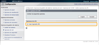 Marque la casilla de verificación para imprimir utilizando LPD. Quite la marca de la casilla de verificación si no desea utilizar la impresión LPD.