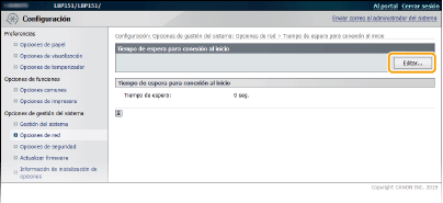 Haga clic en [Opciones de red] [Tiempo de espera para conexión al inicio].