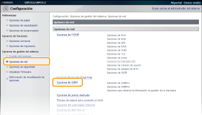 El software de gestión SNMP le permite configurar, supervisar y controlar el equipo de forma remota desde el ordenador donde se haya instalado el software. Para obtener más información, consulte los manuales de instrucciones del software de gestión.