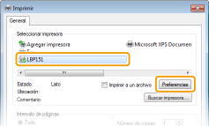 [Dispositivos] [Imprimir] la impresora que está utilizando pulse o haga clic en [Imprimir]Si imprime utilizando este método, únicamente existirá un número limitado de opciones de impresión disponibles.