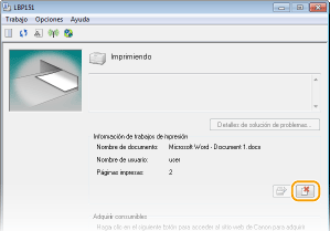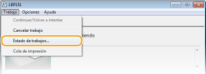 Puede cancelar trabajos de impresión desde la Ventana Estado de la impresora.