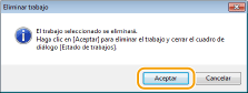 Si se pulsa la tecla (Cancelar trabajo) del equipo, se cancelará el trabajo que se esté imprimiendo en ese momento.