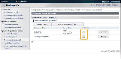 Haga clic en [Opciones de seguridad]  Haga clic en [Opciones de clave y certificado] o en [Opciones de certificado de CA].