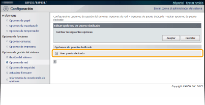 Off![]() On![]() Nombre de comunidad![]() Permiso de acceso a MIB![]() ![]() Lectura/Escritura![]() ![]() Sólo lectura![]() Usar comunidad dedicada