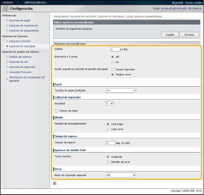 Opciones de usuario 1/Opciones de usuario 2/Opciones de usuario 3