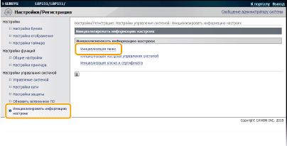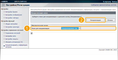 Можно инициализировать параметры меню [Настройки] и [Настройки функций] Remote UI (