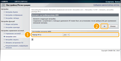 В большинстве Ethernet-сетей максимальный размер пакета для отправки составляет 1500 байтов. Термином "пакет" обозначаются небольшие блоки данных, на которые разделяются исходные данные перед отправкой. Максимальный блок данных (МБД) может варьироваться в зависимости от особенностей сети. При необходимости настройки аппарата можно изменить. Дополнительные сведения можно получить у администратора сети.