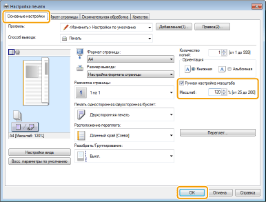 Параметры увеличения/уменьшения в некоторых приложениях приоритетнее, чем те же параметры в драйвере принтера.