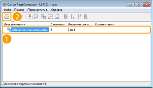 Используя Canon PageComposer, можно объединить несколько документов в одно задание на печать и выполнить это задание с указанными настройками печати. Эта функция, например, позволяет объединять документы, созданные в разных приложениях, и печатать все страницы этих документов на бумаге одного формата.