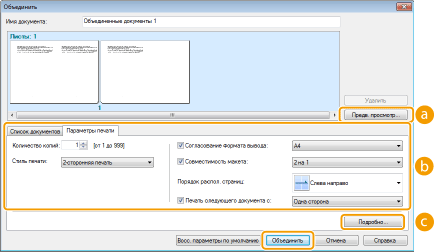 Если необходимо, измените параметры и щелкните [Объединение].