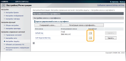 . Щелкните [Настройки ключа и сертификата] или [Настройки сертификата CA].