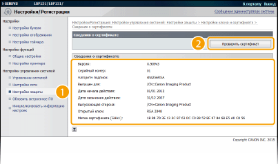 Проверьте информацию о сертификате и щелкните [Проверить сертификат].