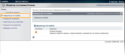 При появлении ошибки можно отобразить эту страницу, щелкнув сообщение, показанное в [Информация об ошибке] на странице портала (главная страница).