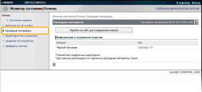 Щелкните [Перейти на сайт для совершения покупок], чтобы отобразить страницу для приобретения расходных материалов.