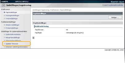 Kontroller, om maskinens firmware er den nyeste version, og opdater via internettet.