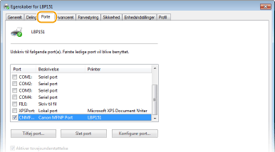 ![]() Du kan kun tilføje en MFNP-port, hvis du har installeret printerdriveren fra den medfølgende dvd-rom, eller hvis du har downloadet og installeret printerdriveren fra Canons websted.
