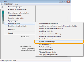 Altid udskrivning i lydsvag tilstand![]() Du kan indstille maskinen til lydsvag tilstand, så maskinen altid udskriver i lydsvag tilstand. Du kan ændre maskinindstillinger i Printerstatusvindue.