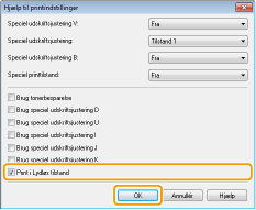 ![]() Lydsvag udskrivningHvis du er træt af støjen fra udskrivningen, kan du reducere den ved at angive lydsvag tilstand. Bemærk, at hvis du udskriver i lydsvag tilstand, kan udskrivningshastigheden blive langsommere.