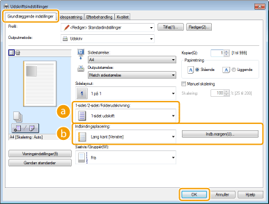 Du kan foretage både 1-sidet og 2-sidet udskrivning. Standardindstillingen er [2-sidet udskrift]. Rediger indstillingerne efter behov.