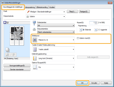 Du kan udskrive én side fra et dokument på flere sider. Hvis du f.eks. gør et dokument på én side i A4-størrelse ni gange større, får du en plakat med en størrelse på 3 x 3 A4-ark, når du har udskrevet dokumentet og sat arkene sammen.