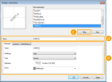 Viser skærmen for oprettelse eller redigering af vandmærker.