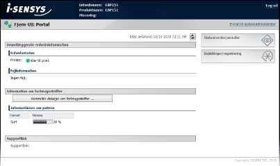 For at betjene maskinen via fjernadgang skal du starte Fjern-UI ved at indtaste maskinens IP-adresse i din webbrowser. Før start skal du kontrollere den IP-adresse, der er blevet tildelt maskinen (